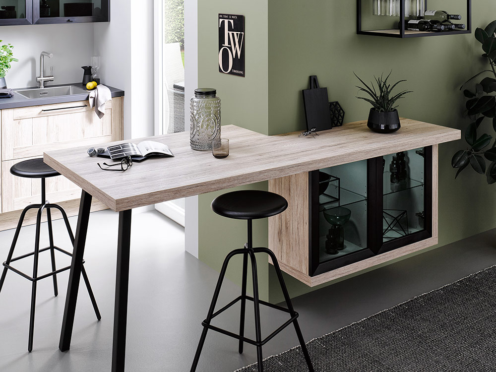 Dit moderne keukenontwerp is gebaseerd op de populaire trend Scandinavisch design. Kenmerkend voor de Scandinavische keukenstijl is het gebruik van koele pasteltinten met natuurlijke materialen zoals de houten fronten in deze keuken.